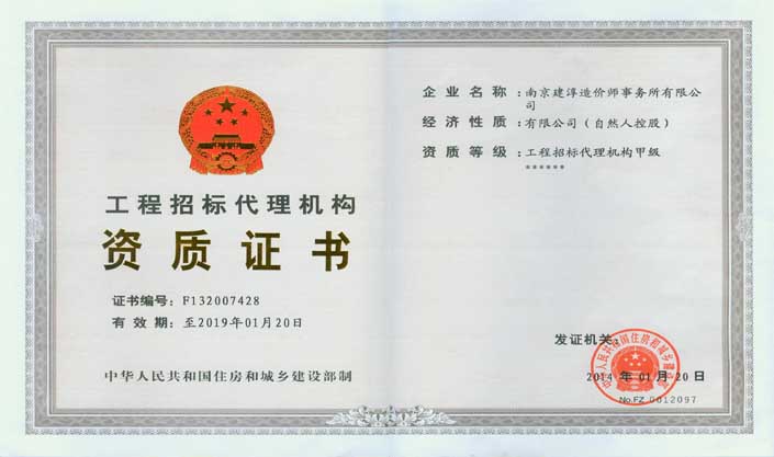 工程招標(biāo)代理機構(gòu)甲級資質(zhì)證書